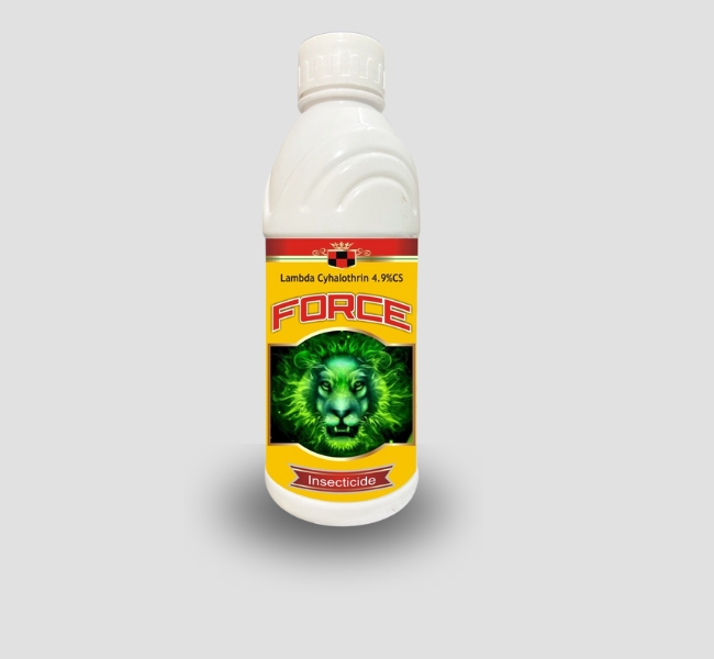 फोर्स एक आधुनिक और प्रभावशाली कीटनाशक है, जिसमें सक्रिय तत्व के रूप में लेम्बडा सायहेलोथ्रिन 4.9% सी.एस. मौजूद है। यह एक सिंथेटिक पाइरेथ्रॉइड श्रेणी का कीटनाशक है, जिसे विशेष रूप से फसलों में होने वाले रस चूसने वाले एवं काटने-चबाने वाले कीटों के त्वरित और लंबे समय तक नियंत्रण के लिए विकसित किया गया है। फोर्स का प्रभाव तेज़ होता है और यह कम मात्रा में भी उच्च स्तर की सुरक्षा प्रदान करता है।